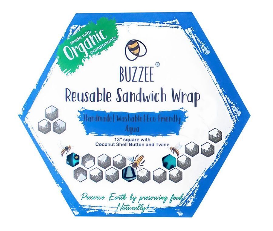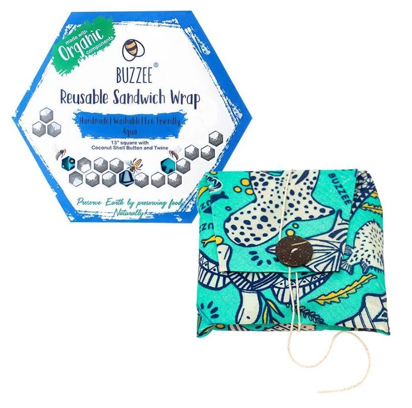 Buzzee Organic Beeswax Reusable Sandwich Wrap - Aqua