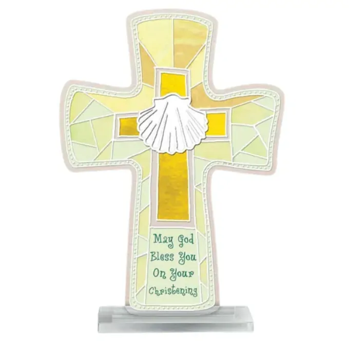 Christening Painted Glass Crucifix