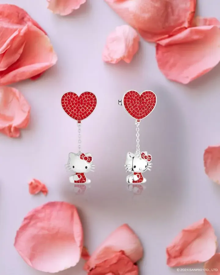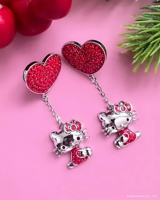 Couture Kingdom - Sanrio - Hello Kitty Crystal Heart Drop Earrings Silver