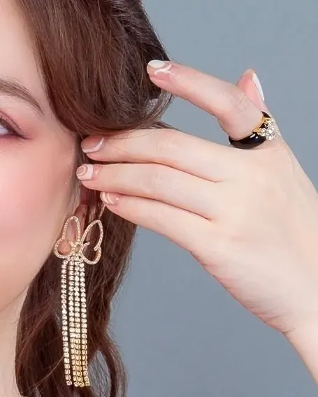 Disney Couture Kingdom - D100 - Minnie Mouse Crystal Bow Drop Earrings Yellow Gold