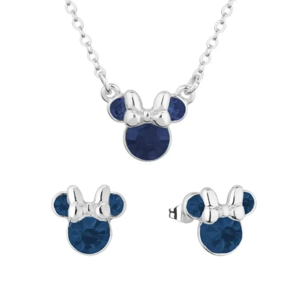 Disney Couture Kingdom December Birthstone Minnie Necklace & Earrings Bundle Silver