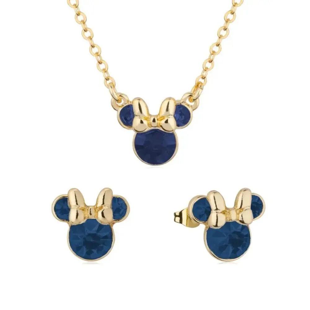 Disney Couture Kingdom December Birthstone Minnie Necklace & Earrings Bundle Gold
