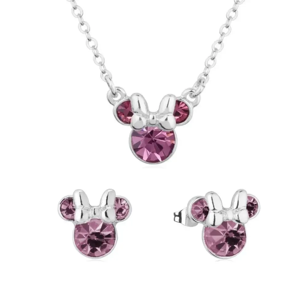 Disney Couture Kingdom June Birthstone Minnie Necklace & Earrings Bundle Silver