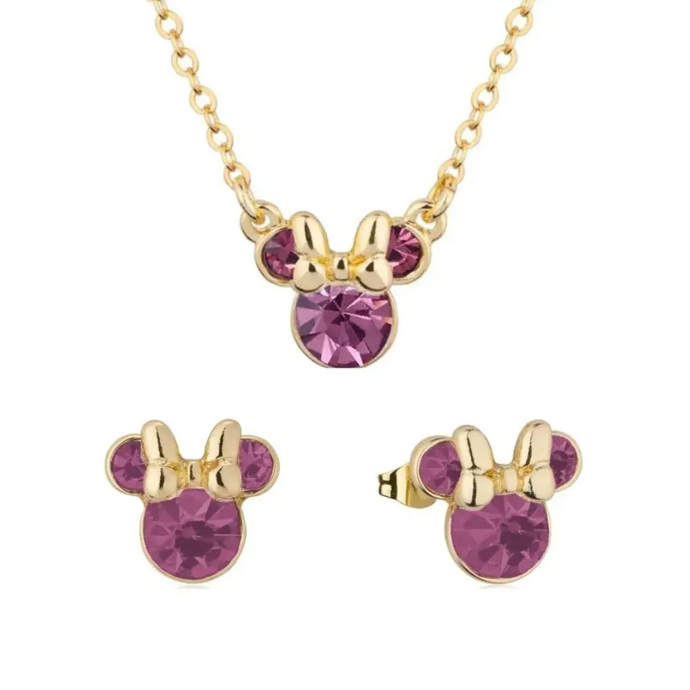 Disney Couture Kingdom June Birthstone Minnie Necklace & Earrings Bundle Gold