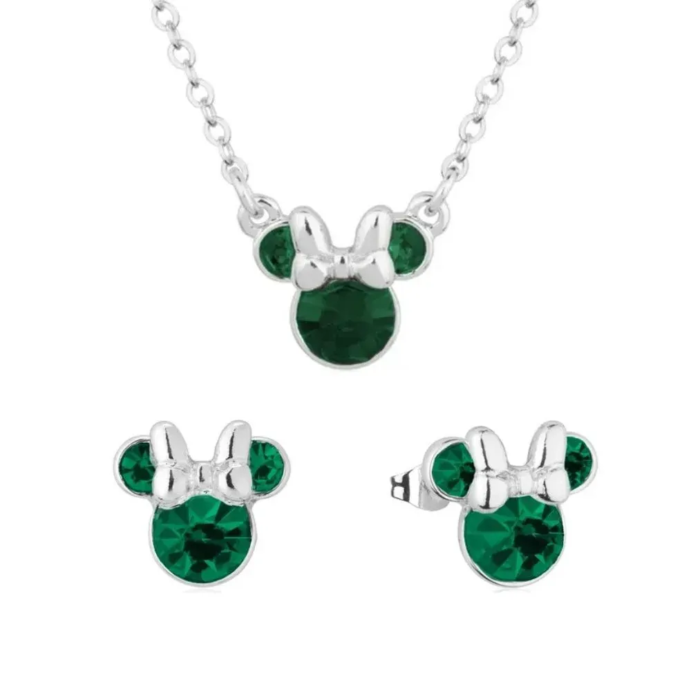 Disney Couture Kingdom May Birthstone Minnie Necklace & Earrings Bundle Silver
