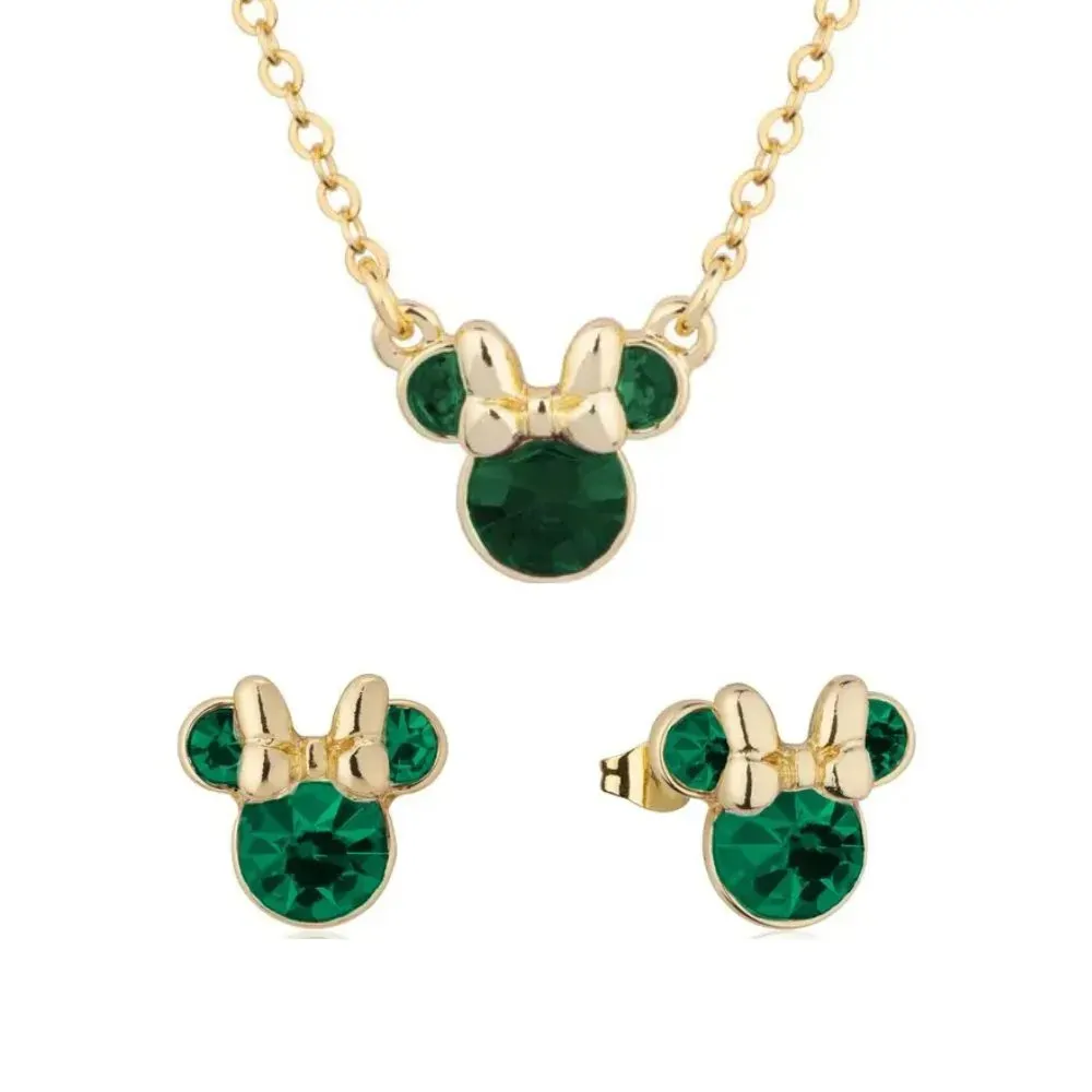 Disney Couture Kingdom May Birthstone Minnie Necklace & Earrings Bundle Gold