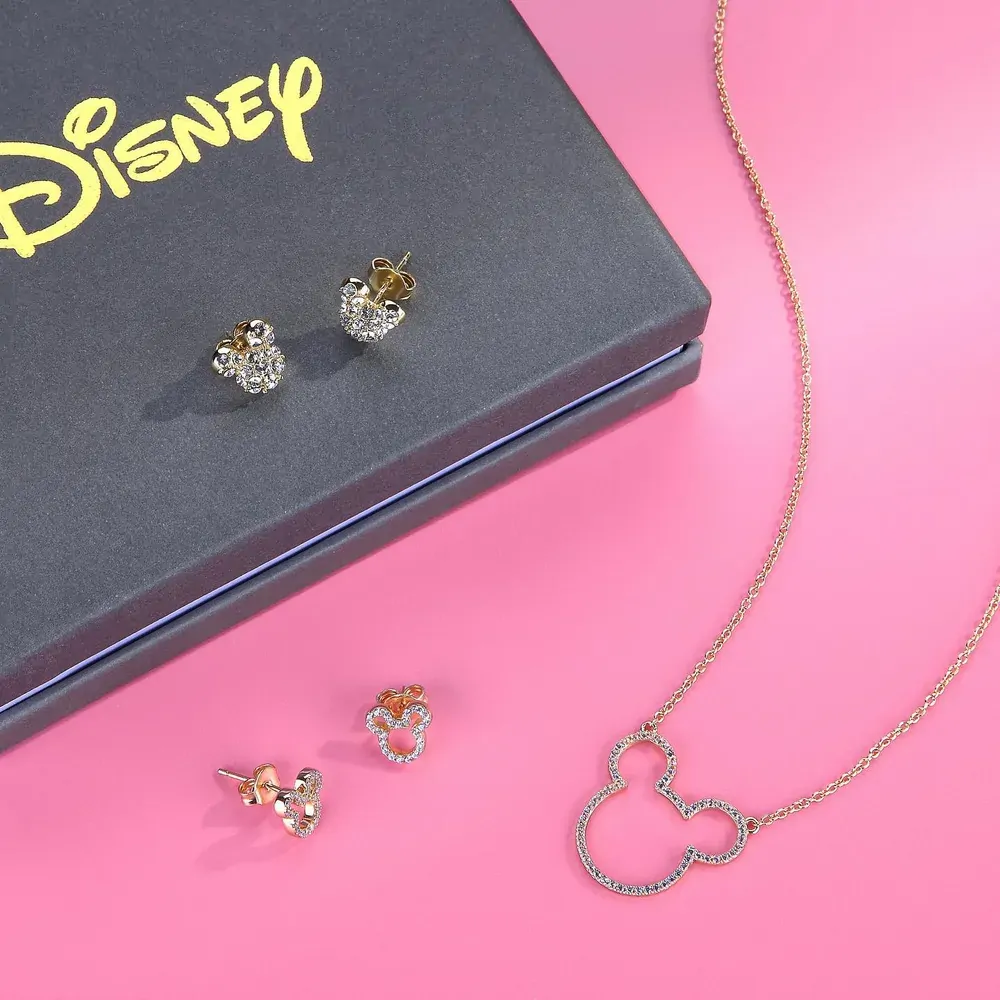 Disney Couture Kingdom - Mickey Mouse - Pave` Crystal Stud Earrings Yellow Gold