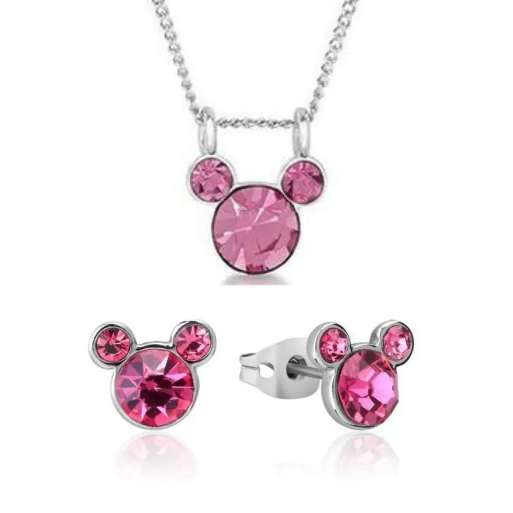 Disney Couture Kingdom October Birthstone Mickey Necklace & Earrings Bundle Silver