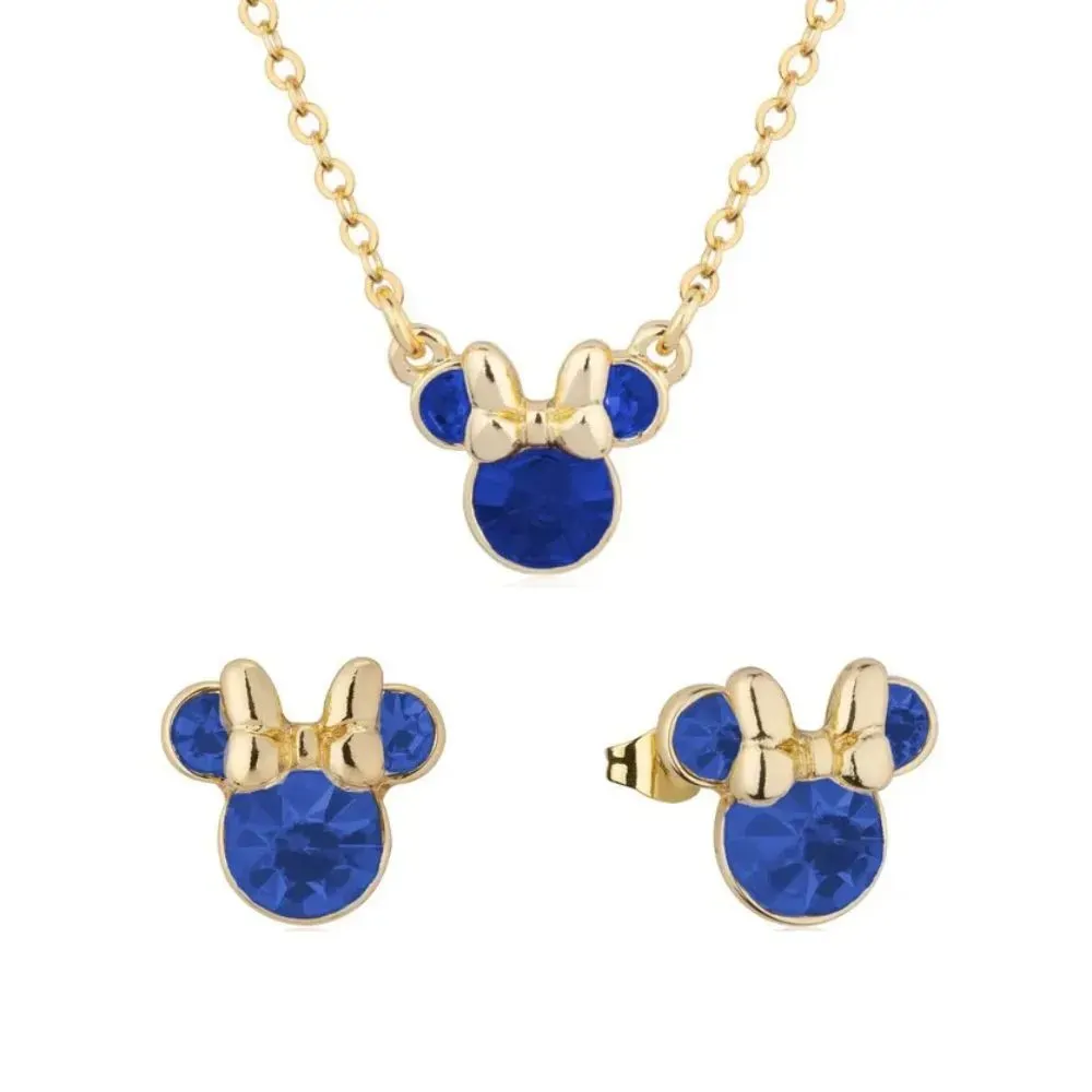 Disney Couture Kingdom September Birthstone Minnie Necklace & Earrings Bundle Gold
