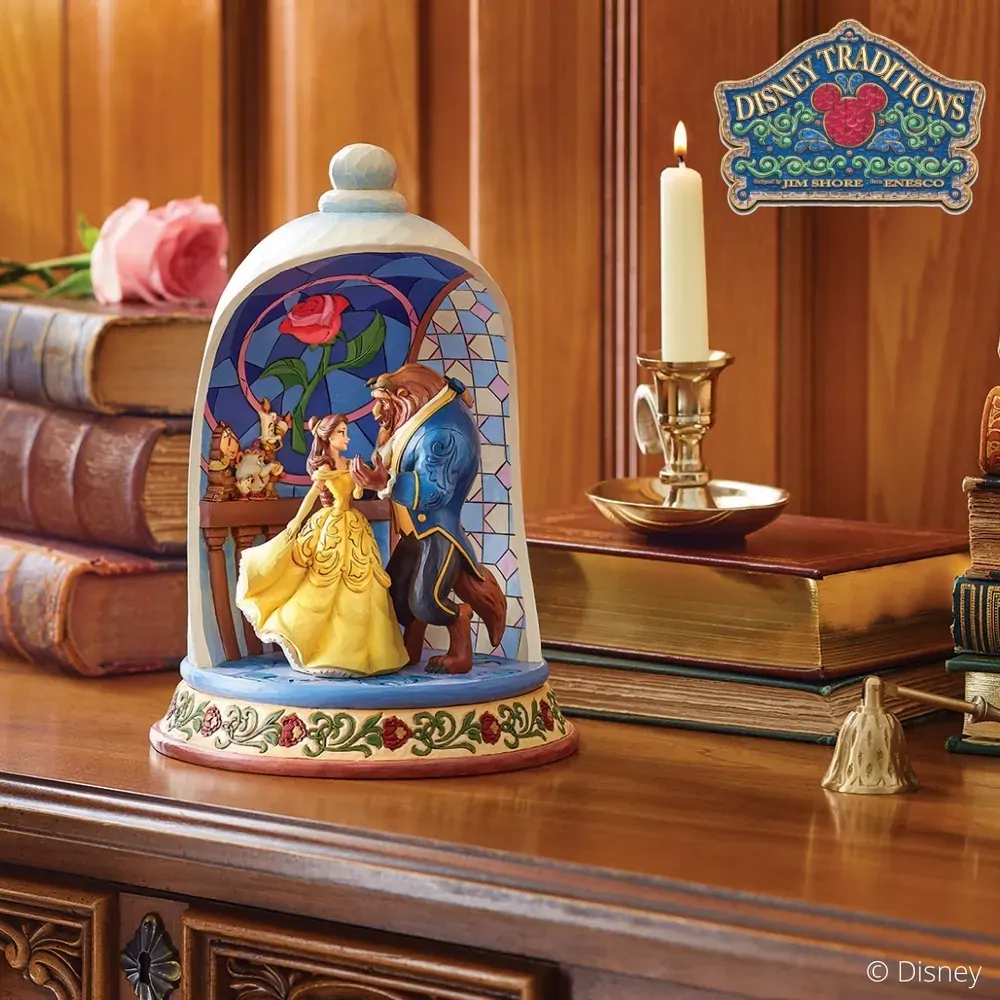 Jim Shore Disney Traditions - Beauty & the Beast Rose Dome - Enchanted Love