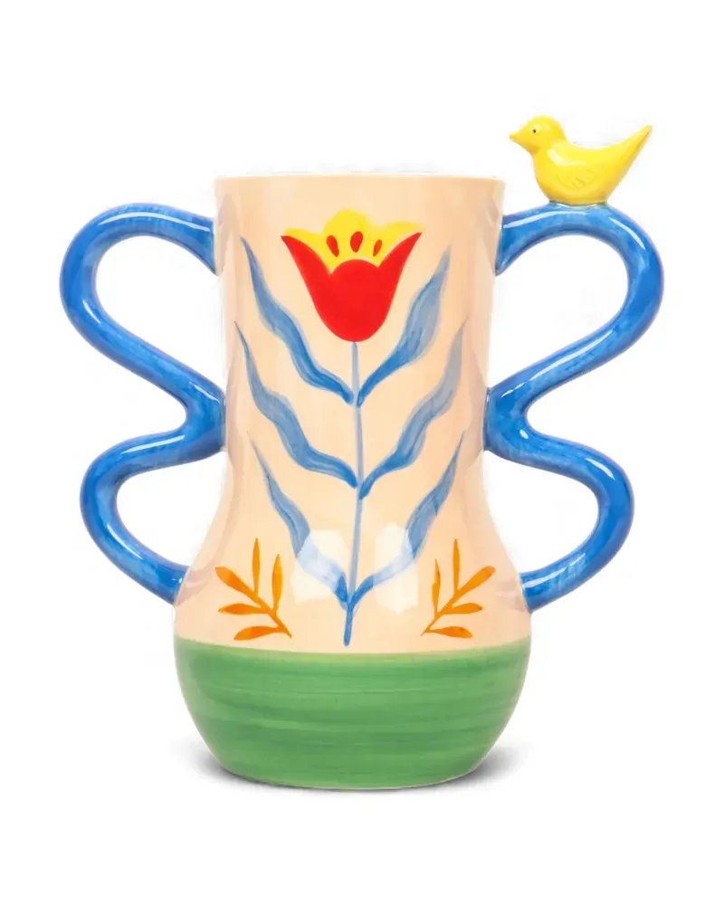 La La Land Beyond Retro Folk - Stoneware Hand Painted Vase
