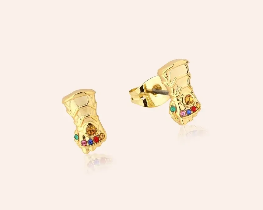 Marvel Couture Kingdom - Infinity Gauntlet Crystal Stud Earrings Yellow Gold