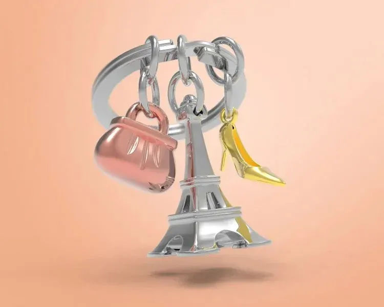 Metalmorphose Keychain - Eiffel Tower, Coffee & Croissant