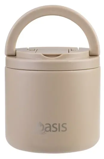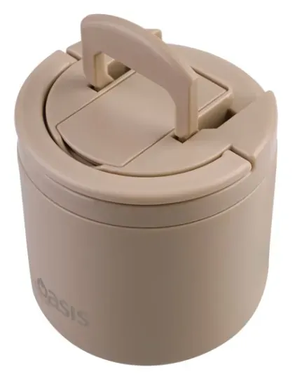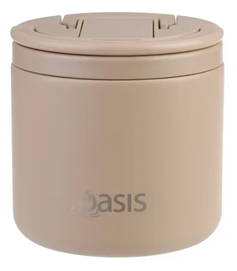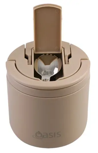 Oasis Double Wall Insulated Quick Release Lid & Spork Food Flask - 500ml Latte