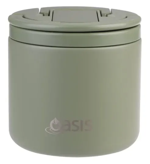 Oasis Double Wall Insulated Quick Release Lid & Spork Food Flask - 500ml Olive Green