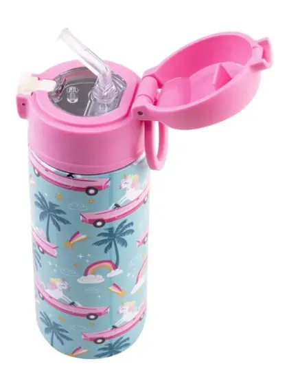 Oasis Double Wall Insulated Sipper Straw Kid's Drink Bottle - 550ml Pink Cadillac