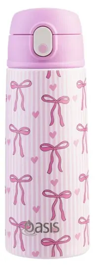 Oasis Double Wall Insulated Sipper Straw Kid's Drink Bottle - 550ml Bows & Hearts