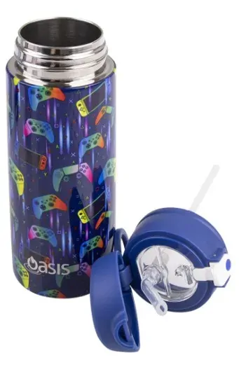 Oasis Double Wall Insulated Sipper Straw Kid's Drink Bottle - 550ml Gamer