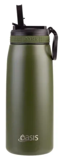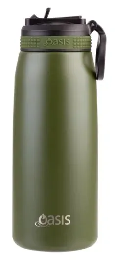 Oasis Sports Double Wall Insulated Water Bottle with Sipper - 780ml Forest Green