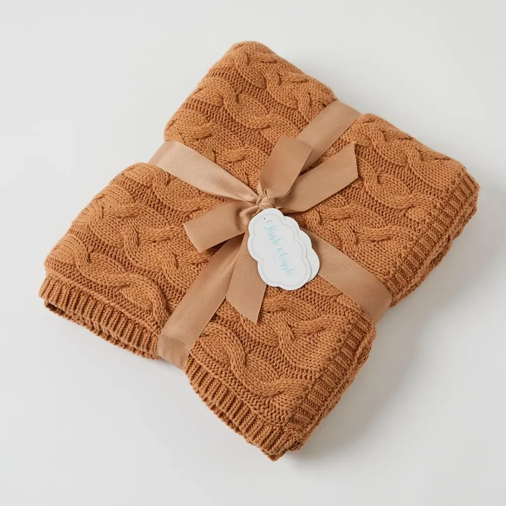 Pilbeam Jiggle & Giggle - Biscuit and Cream Aurora Cable Knit Baby Blanket