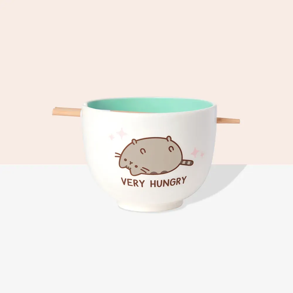 Pusheen Very Hungry Ramen Bowl with Chopsticks