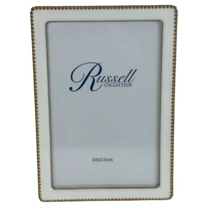 Russell Collection Frame - White & Gold Tone Beaded Frame 4x6in