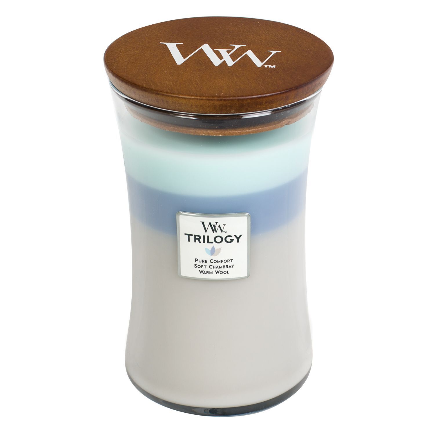 Nothing adds quaint charm to a home like a high quality candle.The Trilogy Candle allows you to enjoy three harmonious fragrances and the soothing sound of a crackling wooden wick. Each layer of wax contains a different fragrance that compliments the next so as the candle burns, each fragrance melts into the next, creating a unique new scent.